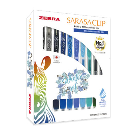 Boligrafo Zebra Sarasa Clip rollerball retractil punto mediano 0.7 tinta gel colores urtidos Wnter caja c/10
