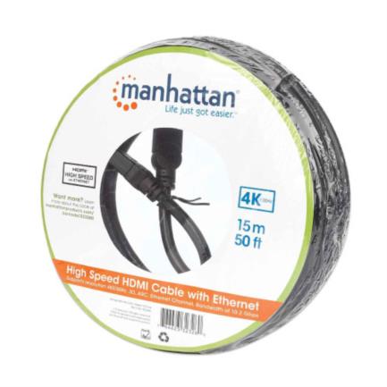 Cable Manhattan Alta Velocidad Canal Ethernet HDMI M-M 15m Color Negro